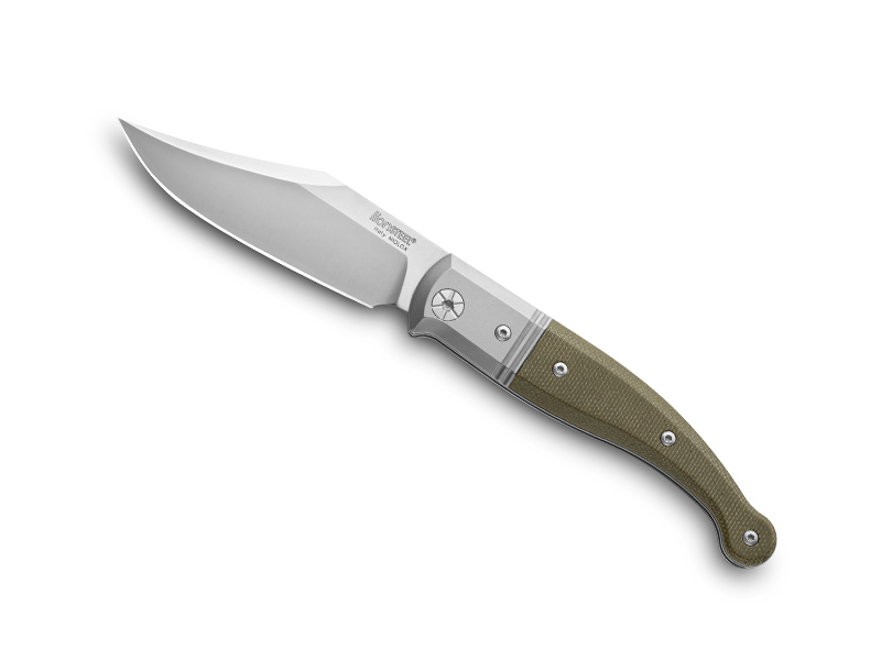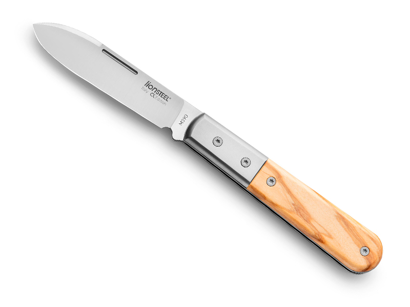Couteau Lionsteel Rounded Barlow - manche 11 cm olivier + mitre titanium
