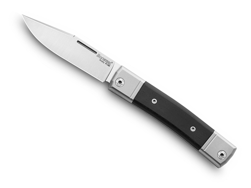 Couteau Lionsteel Bestman - manche 10 cm plaquettes ébène et mitres titanium 6AL4VCouteau pliant Lionsteel Bestman - manche 10 cm plaquettes ébène et mitres titanium 6AL4V