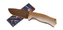 Couteau Lionsteel Bestman - manche 10 cm plaquettes olivier et mitres titanium 6AL4VCouteau pliant Lionsteel Bestman - manche 10 cm plaquettes olivier et mitres titanium 6AL4V