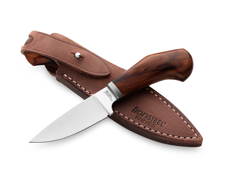 Poignard Lionsteel Willy - lame 6,5 cm - manche bois de santosPoignard LIONSTEEL « WILLY » - lame 6,5 cm acier satiné - garde titanium - manche bois de santos.