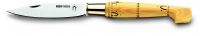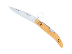 Ce couteau de poche est muni d'une lame de 7 cm en acier inoxydable Z40C13 et d'un manche de 9 cm en buis.