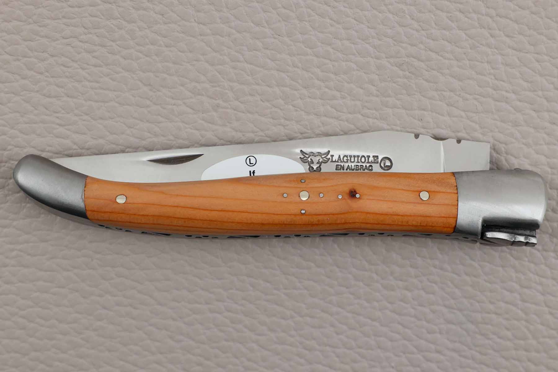 Couteau Laguiole en Aubrac 12 cm - double mitres manche en If - Ressort forgé