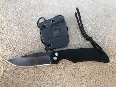Quant au manche, il en G10 et mesure 10 cm. Le couteau est livré avec un étui Kydex avec