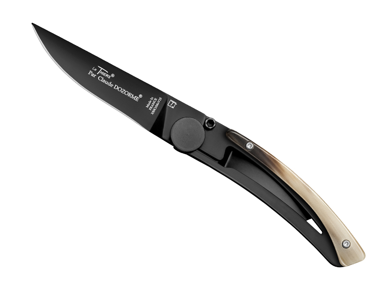 Couteau Le Thiers Liner Lock C. Dozorme full black - manche 10.5 cm corne claire