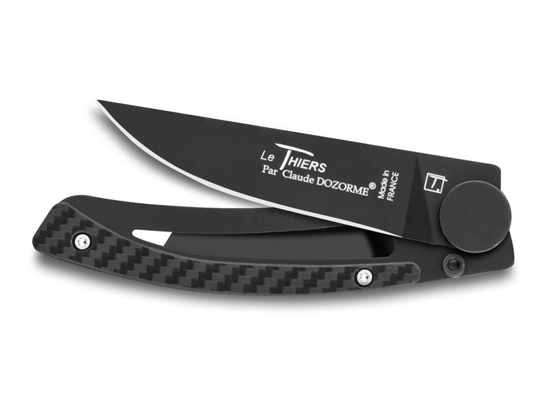Couteau Le Thiers Liner Lock C. Dozorme full black  - manche 10.5 cm fibre de carbone