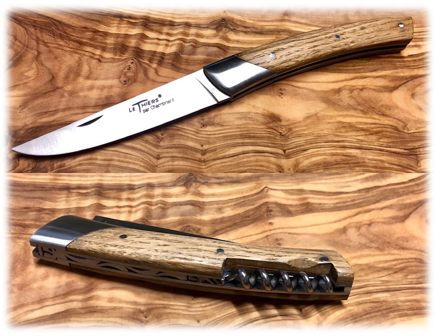Le couteauThiers -Le Grand Cru de la Coutellerie Chambriard située à Thiers est le seul modèle avec tire-bouchon de la fabrique.La forme Thiers du couteau est munie d'une lame de 9 cm en acier 13C26, d'un tire-bouchon et de plaquettes réalisées dans de jolis morceaux de bois ou de belles matières comme le bois de cerf ou la corne de bélier.