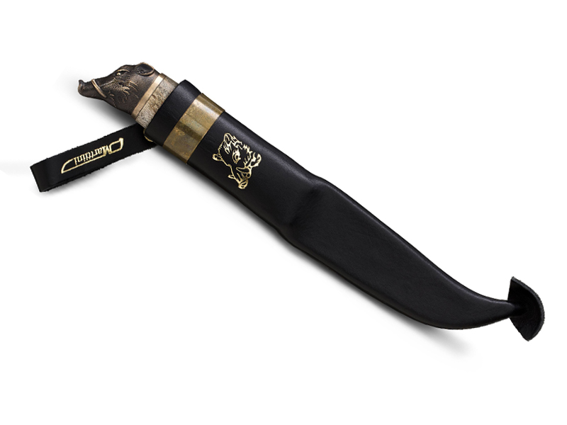 Poignard Marttiini Wild Boar lame 11 cm - manche bouleau ciré avec mitre tête de sanglier