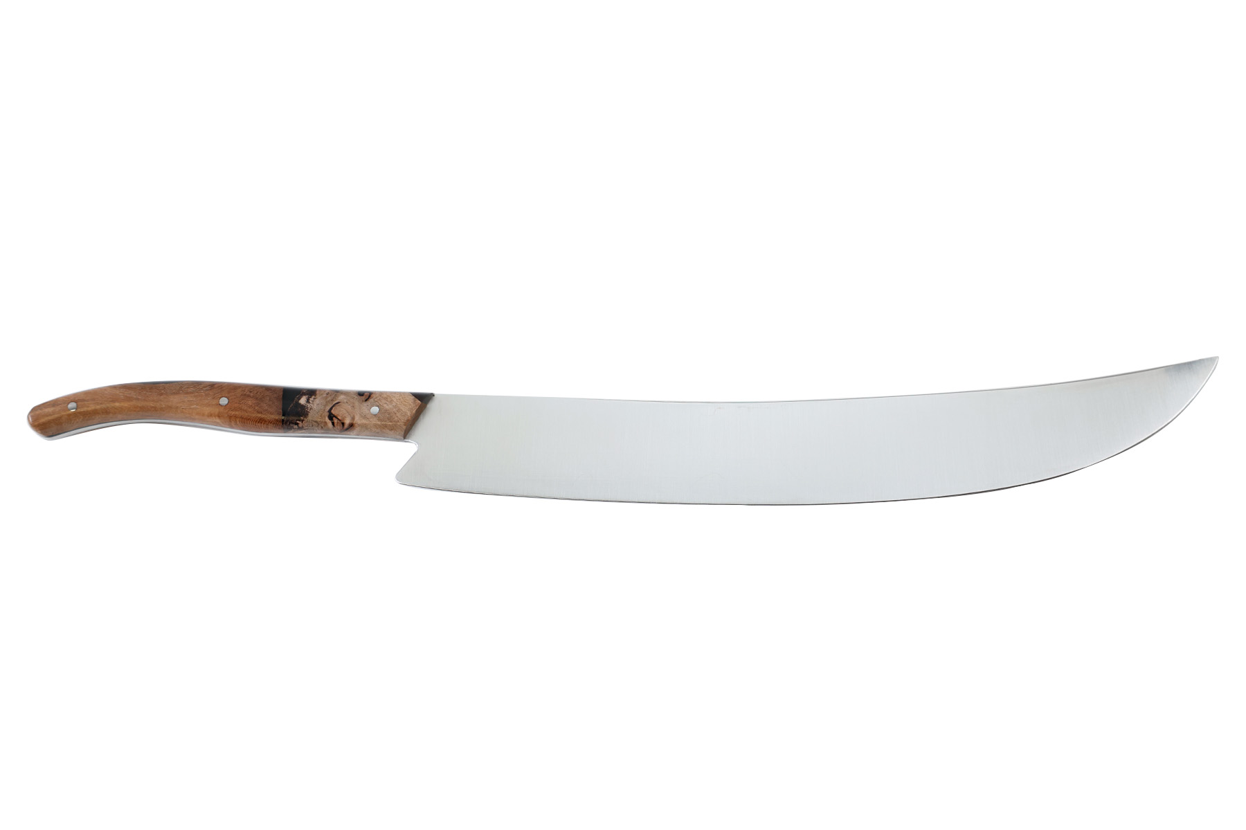 Ce sabre se compose d'une lame en acier inoxydable et de plaquettes en cep de vignes.