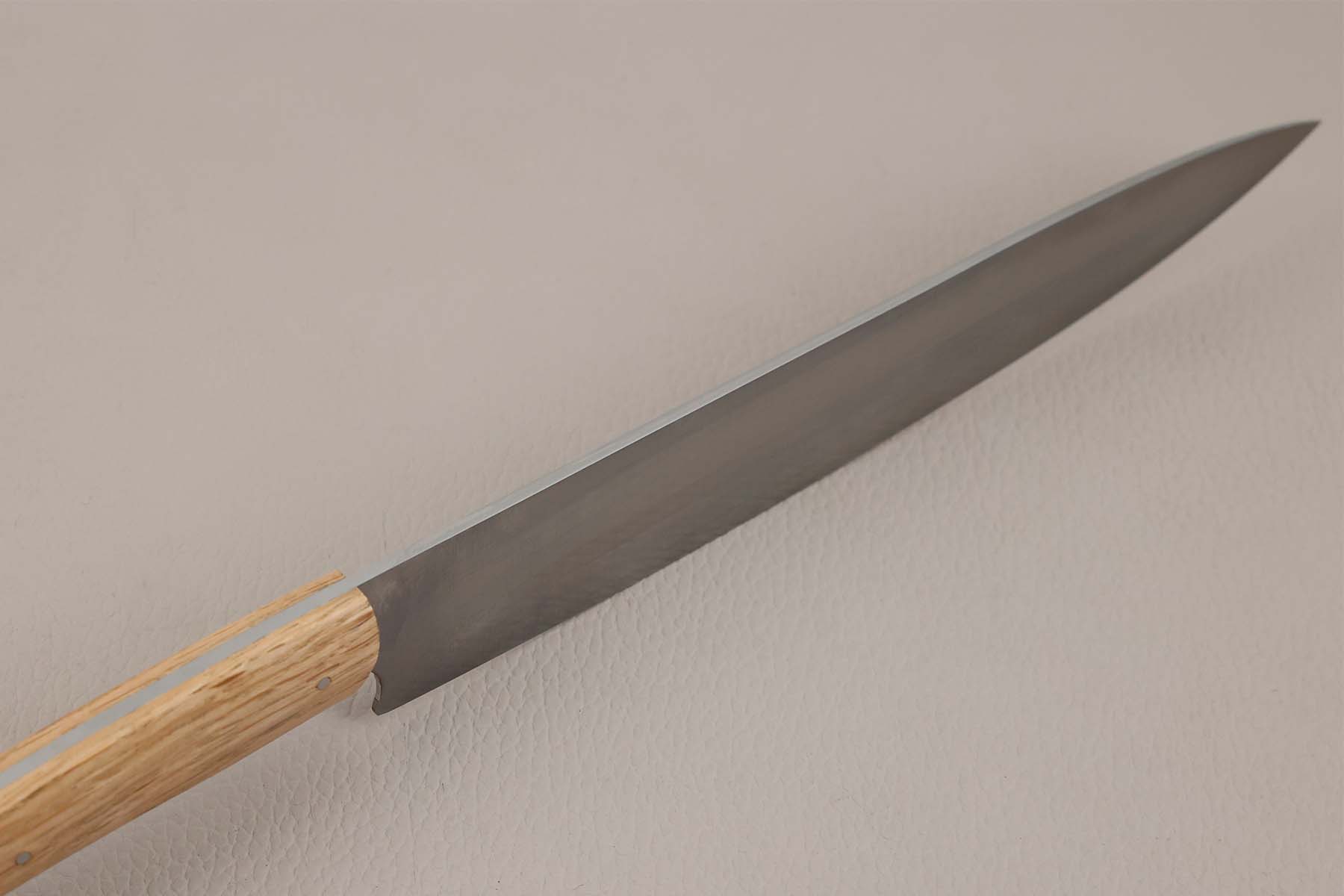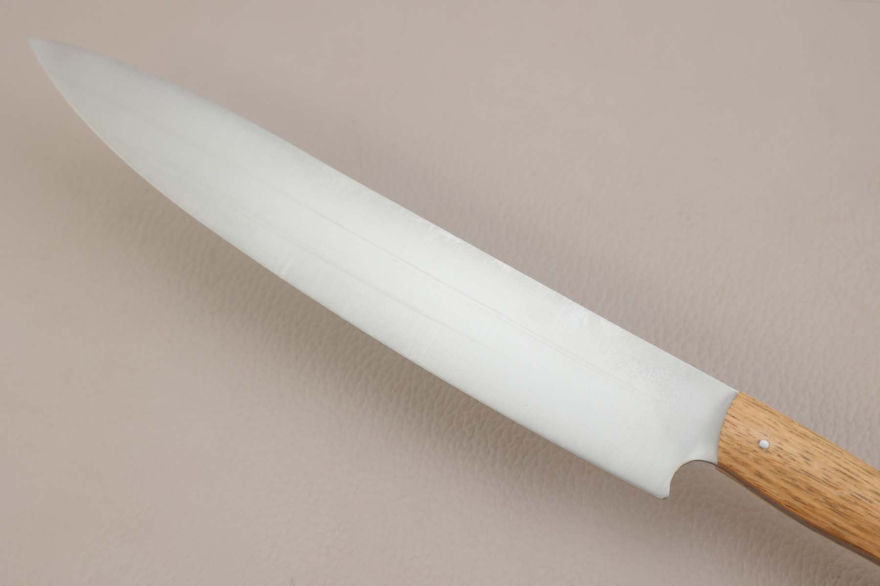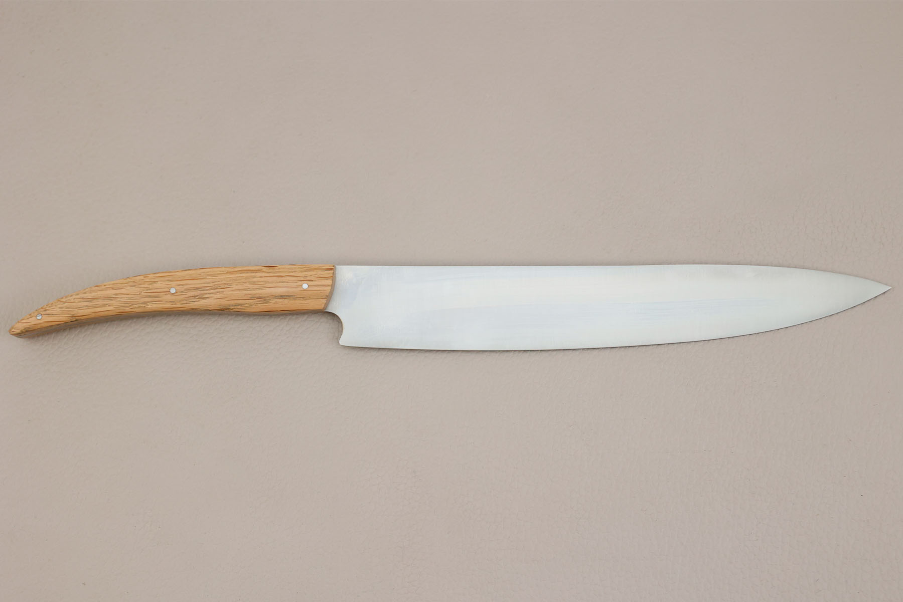 Ce sabre se compose d'une lame en acier inoxydable et de plaquettes en chêne.