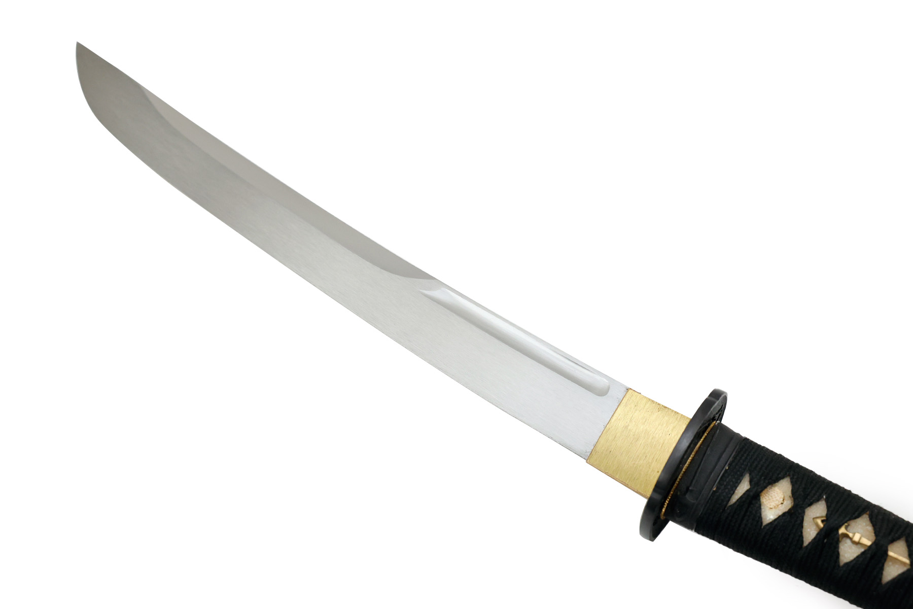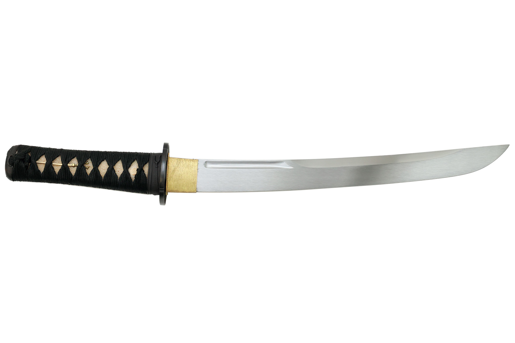 Poignard japonais Cold Steel tanto warrior Serie. Lame affutée en acier 1055 de 34cm avec gorge et pointe biseautée.