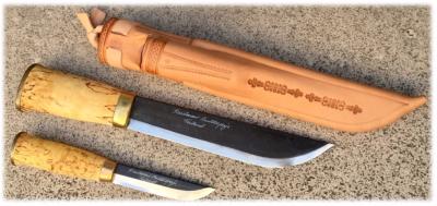 Comprenant un couteau Leuku à lame en acier au carbone de 21 cm d'une dureté de 59 HRC pour les grosses découpes.