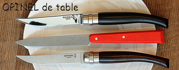 Connu pour ses couteaux pliants, Opinel a su se faire une belle place dans le domaine du couteau de cuisine et du couteau de table et propose aujourd'hui un très beau choix de produits.